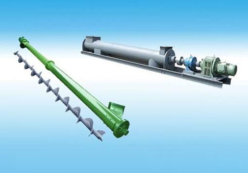 GX型螺旋輸送機是利用旋轉的螺旋將被輸送的物料沿固定的機殼內推移而進行輸送工作,頭部及尾部軸承移至殼體外,吊軸承采用滑動軸承設有防塵密封裝置,軸瓦一般采用粉末冶金,輸送水泥采用毛氈軸瓦,吊軸和螺旋軸采用滑塊連接。